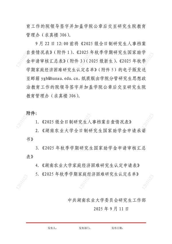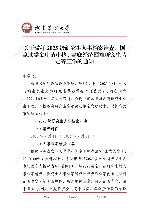 关于做好2025级研究生人事档案清查、国家助学金申请审核、家庭经济困难研究生认定等工作的通知